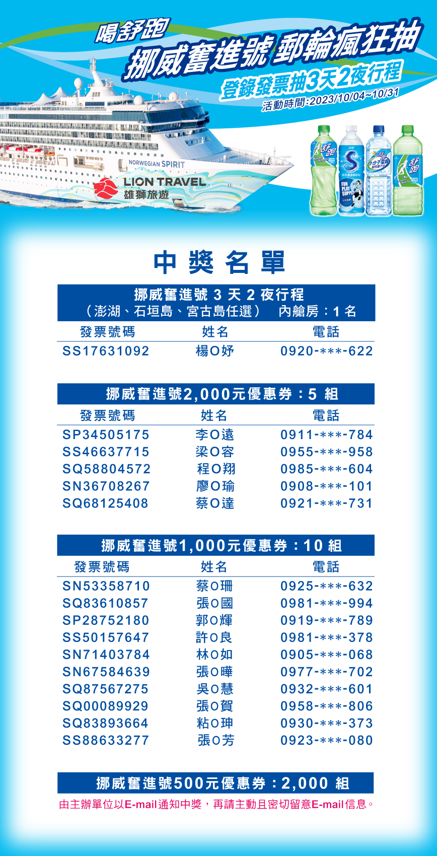 3. 蒐集資料類別:您提供於抽獎頁面上之各項個人資料(包括但不限於姓名、電話與電子信箱)。依據個人資料保護法,參加本活動者視為瞭解及同意本公司於抽獎及行銷活動之需要進行蒐集、處理及利用其個人資料。