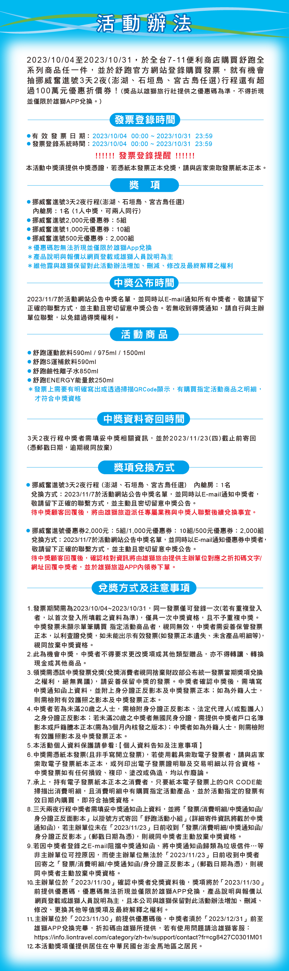 6. 主辦單位對於所有已領取或使用各獎項商品之使用後果,概不負責。